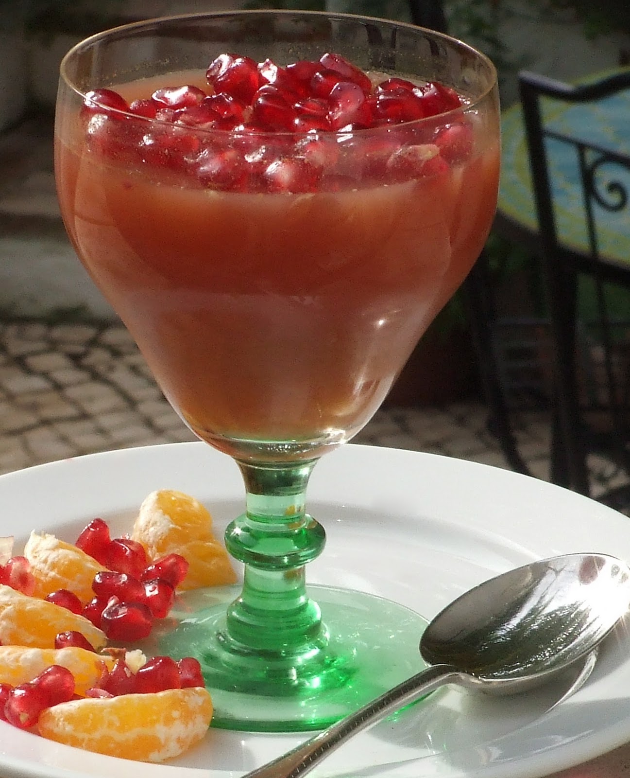 Casa Rosada served this last night. It is labour intensive, but makes a very unusual and delicious desert.Pomegranates are now in season and with Christmas just around the corner, this would make a refreshing grand finale to the Christmas lunch.