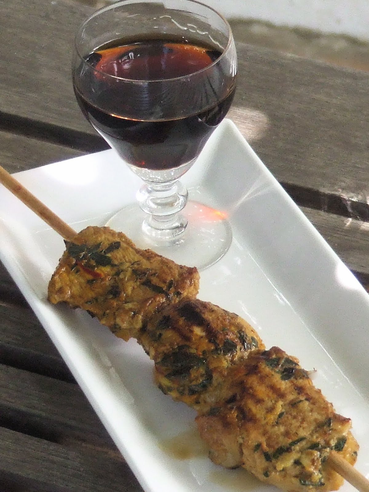 they are still marinated in a Moorish spice mix and usually grilled outside and over charcoal or wood; however, they also cook beautifully on a griddle or on a heavy griddle type pan inside, during the cooler months.Great finger food for friends - or you can increase the quantities and make them a meal or part of a barbecue.- 500g lean pork fillets, lean lamb fillets or skinless chicken breasts