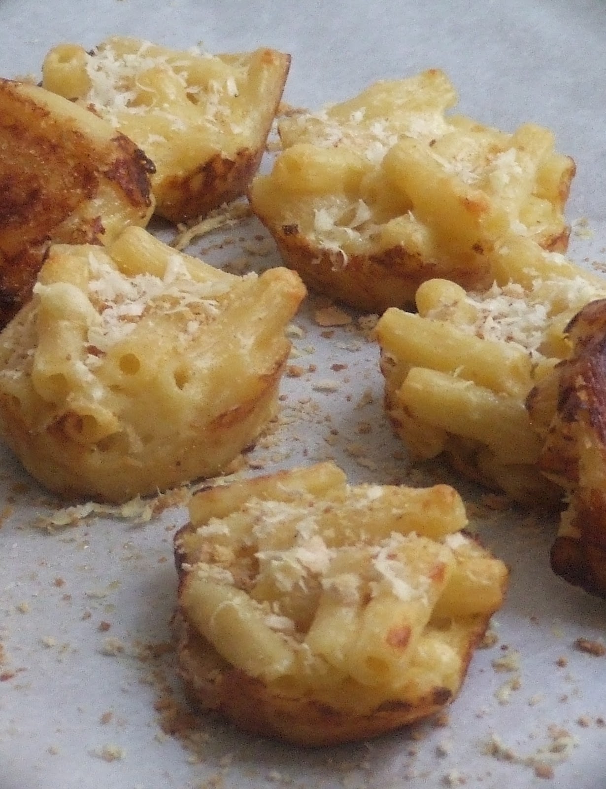 This has to be the mutton dressed as lamb canapé, or is it all knickers and not a fur coat in sight. Whatever. Here again is another something the host can prepare in advance,refrigerate and re-heat 7 minutes before it is needed.How I just adore macaroni cheese and now being able to eat it with my pinky finger aloft and and a flute of fizz in the other handwhile I talk to my guests, what a happy bunny am I.Here is a closet classic coming out and proudly saying I am now a contemporary canapé.