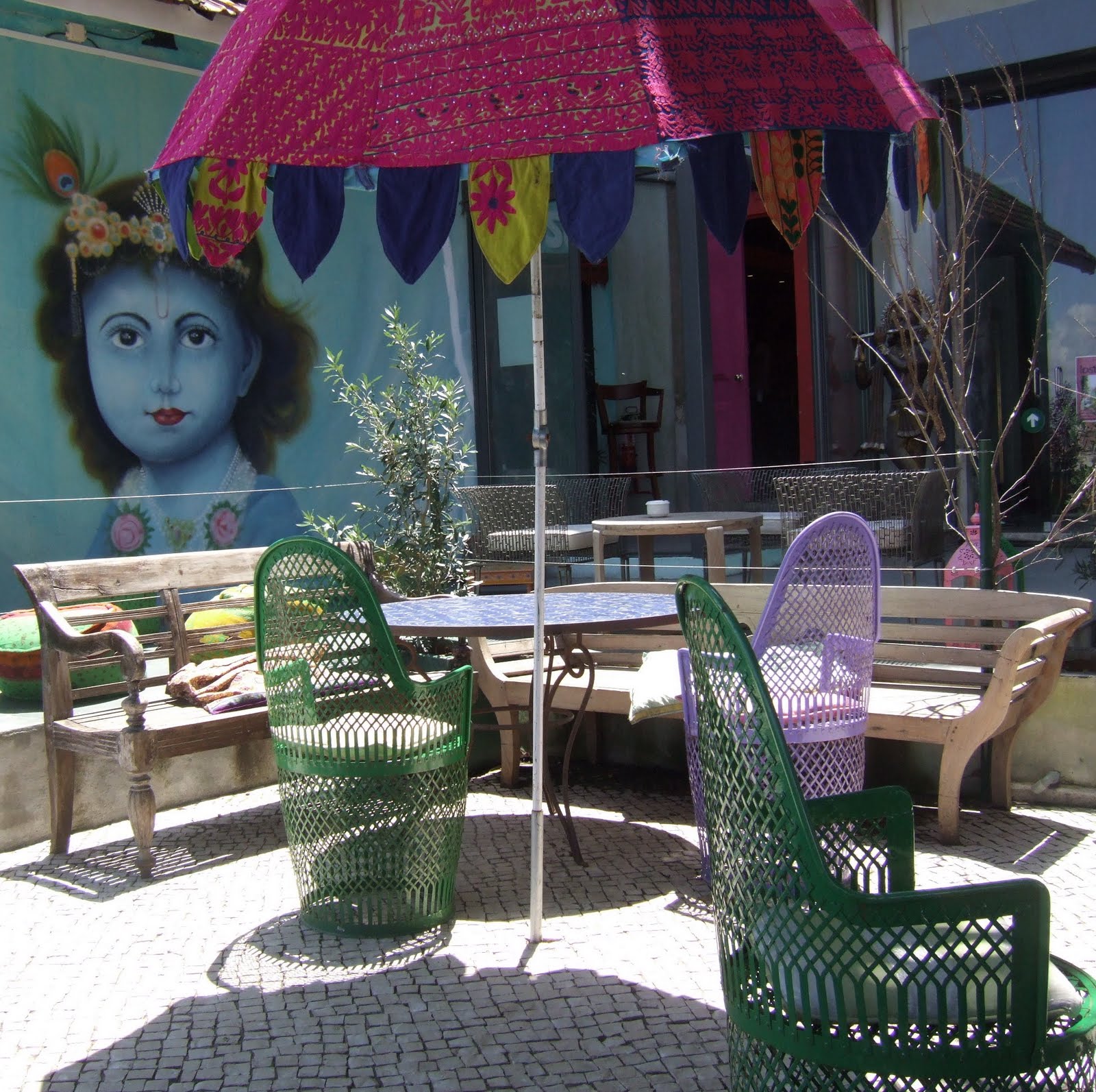 At lunch time on a hot May day last week we found ourselves on Rua Dom Pedro in Principe Real at the highest point of the Bairro. Lost again within 15 minutes and bored of staring at maps, hot and weary with stomachs crying out for some sort of nourishment we despair that we can´t find a lunch spot where we can sit outdoors and enjoy another view of the Baixa below. The Tapas bar we had been recommended and endeavoured to eat at was closed. But lo and behold, my eye caught a sign directing us through an arch to Lostin - Hippie chic, lifestyle bar, buddha bar, esplanada. Each to his own, make of it what you want, but for sure you will want to find it again, as we did for an early evening snifter.